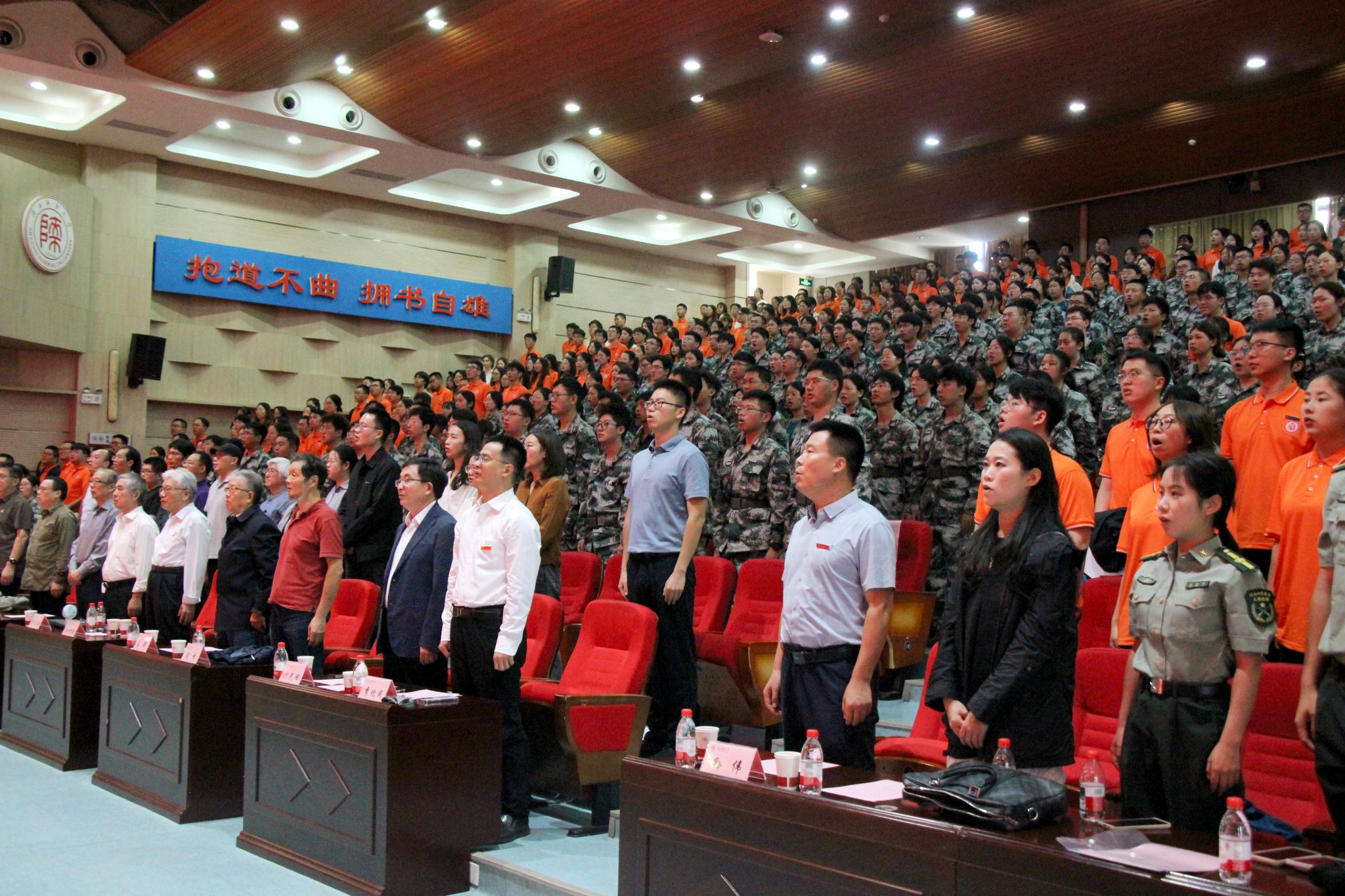 在激昂庄严的国歌声中,开学典礼隆重开幕。