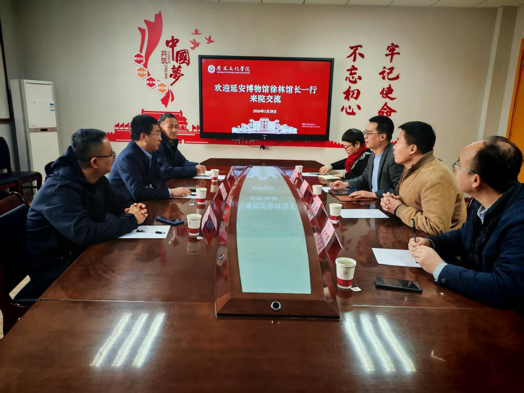 2026年1月28日,延安博物馆徐林馆长、编研部负责人崔元成、办公室项目负责人刘少帅一行到访公司,进行工作交流。公司党委书记孙伟、副经理刘旭辉及杨瑾教授等参加了座谈,经理李化成主持会议。